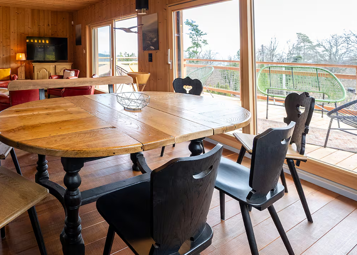 Vous y trouverez une grande pièce de vie lumineuse, une cuisine équipée tout confort, et une terrasse couverte avec vue sur la forêt.